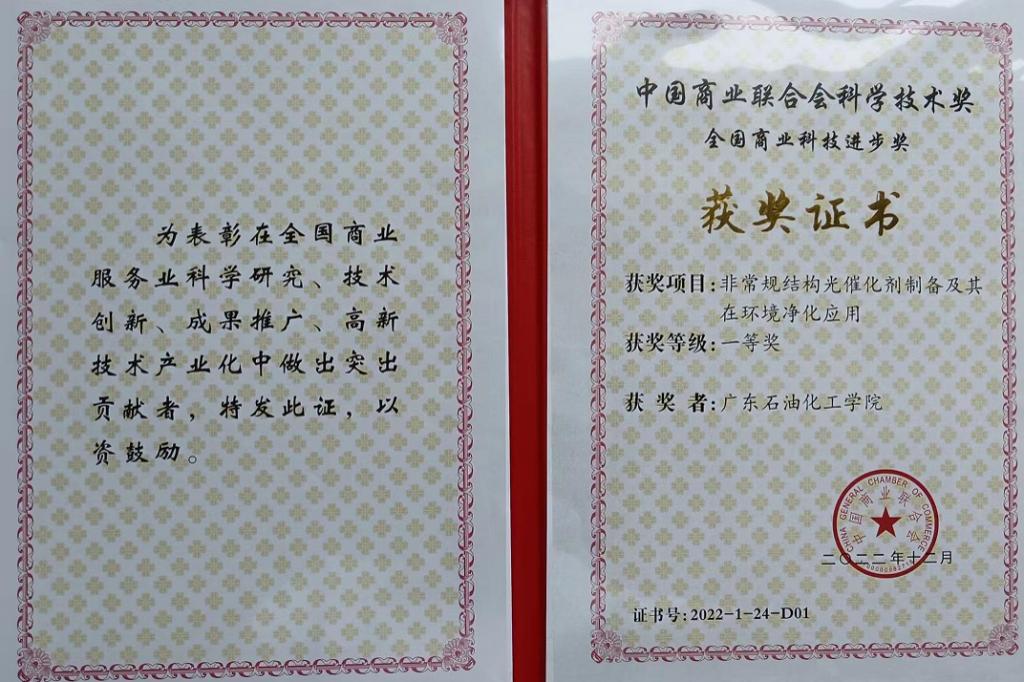 大会颁发了2022年中国商业联合会科学技术奖、第十四届中国商业联合会服务业科技创新奖等奖项。我校化工学院余长林教授团队主持完成的科技成果《常规结构光催化剂制备及其在环境净化应用》,获全国商业科技进步奖一等奖。该成果best365足球官网为第一完成单位,杭州楚环科技股份有限公司为第二完成单位。该项目成果获15件授权中国发明专利,11件实用新型专利,国际PCT专利1件;在科学出版社等出版了《声化学及其在纳米材料制备中的应用》等专著编著5部;在Advanced Materials等发表论文200余篇。项目实现了光催化剂和化学洗涤、生物过滤等技术集成,在废气除臭、石化VOCs、印染、化纤和制药废水污染物的深度去除上进行了工业应用,取得了较大的经济社会效益。