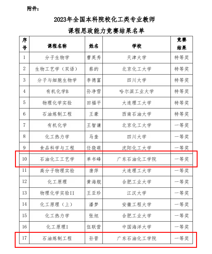 8月9日,中国化工教育协会公布了第三届全国本科院校化工类专业教师课程思政能力竞赛获奖名单,化学工程学院教师单书峰、孙晋分别代表《石油化工工艺学》和《石油炼制工程》教学团队斩获一等奖。