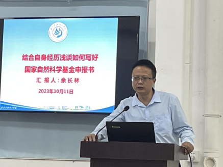 余长林教授从国家自然科学基金评审关键、申报书写作技巧等方面进行辅导,并结合多年来成功获批多项国家自然科学基金项目的丰富经验,从科学选题、立项依据、研究内容、可行性分析、创新点、拟解决的关键科学问题等方面进行详细讲解,对申报教师在基金申请过程中所遇到的一些问题困惑进行耐心解答与经验分享。