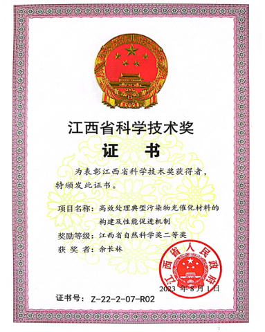 10月23日,江西省科学技术奖励大会在南昌召开。化学工程学院余长林教授的科技成果《高效处理典型污染物光催化材料的构建及性能促进机制》获江西省自然科学奖二等奖。该成果best365足球官网为第二完成单位。