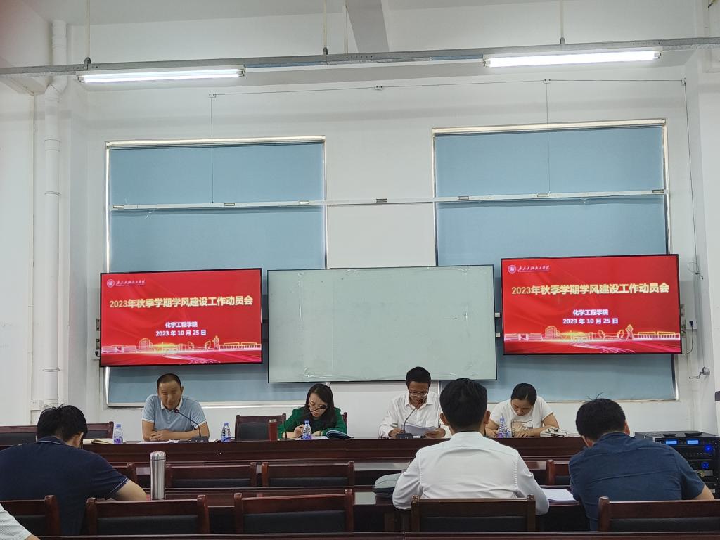 根据学校2023年秋季学期学风建设总体要求,10月25日下午,化学工程学院举行2023年秋季学期学风建设动员大会,学院领导班子成员出席会议,全体教职工参加会议。会议由党委副书记纪玉刚主持。
