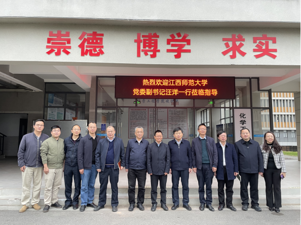 汪洋高度评价了我校和学院事业发展取得的成绩,并介绍了江西师范大学和化学化工学院的基本情况,希望能进一步加强交流合作,促进共赢发展。
