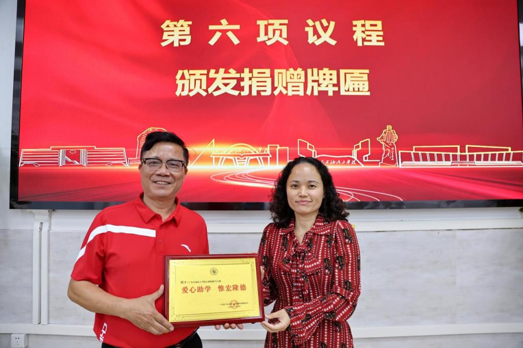 颁奖仪式上,长河集团董事长赵文海宣读“广油炼十五教育基金”表彰决定。校友代表分别向获奖师生颁奖并合影留念。师生代表在发言中感谢情系母校、支持学校教育事业发展的校友们,并表示在接下来的学习与工作中,将以“炼十五班”校友为榜样不断追求卓越,勇攀高峰。学校向“炼十五班”颁发捐赠牌匾,以表达对校友捐资助学最诚挚的谢意。