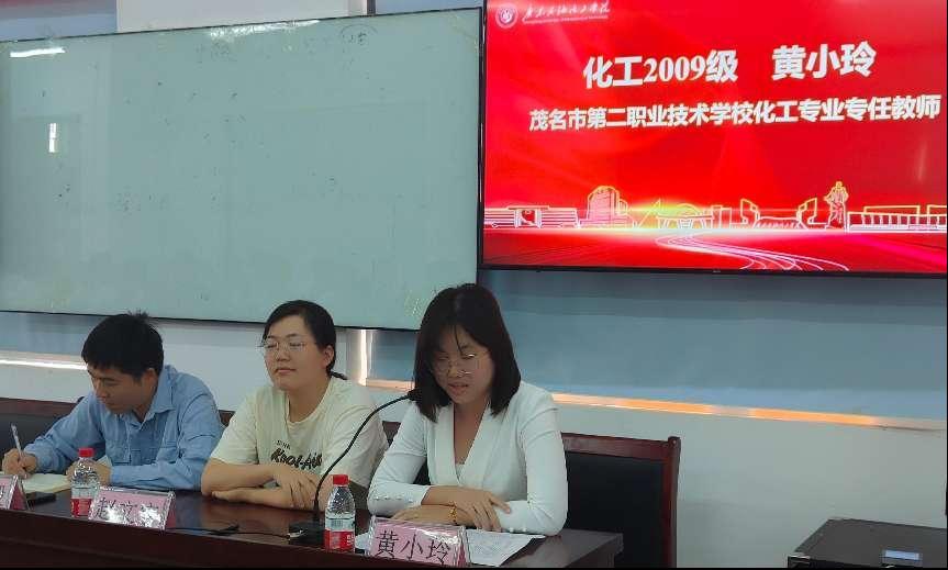 会上,黄小玲校友首先发言。作为茂名市第二职业技术学校化工专业专任教师及党务办副主任,她分享了个人在求学和职业生涯中的奋斗历程,以及在指导学生参加技能大赛方面取得的辉煌成绩。她鼓励在场学生珍惜大学时光,努力提升专业素养,为未来的职业发展打下坚实基础。