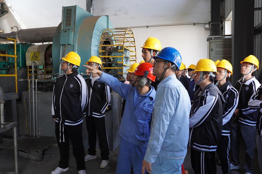 在实践基地,学生们学习了碳一产业的工业尾气二氧化碳制干冰的工艺流程。二氧化碳作为一种重要的工业副产物,其制取和利用在碳中和和能源优化中具有重要意义。通过此次学习,学生们了解了二氧化碳回收与干冰生产过程中的关键技术和设备,包括如何利用工业尾气中的二氧化碳实现资源化利用。
