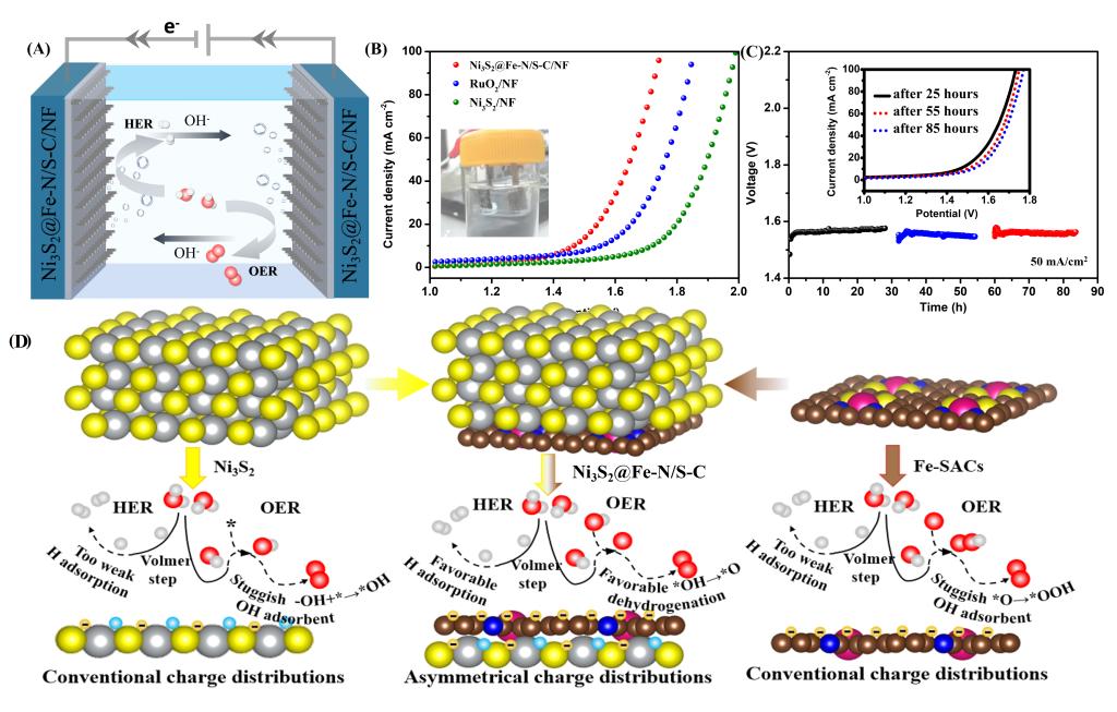 在能源转换与存储领域,电催化水分解作为一种绿色、高效的制氢技术,当前受到工业界和学术界的高度关注。其中,开发新型高效的电催化剂是实现这一技术商业化的关键。单原子催化剂(SACs)因其最大化的原子利用效率和独特的活性位点,在电催化反应中展现出卓越的性能。然而,如何进一步优化SACs的电子结构和界面性质,以提高其在氢进化反应(HER)和氧进化反应(OER)中的双功能活性,仍是一个极具挑战的工作。