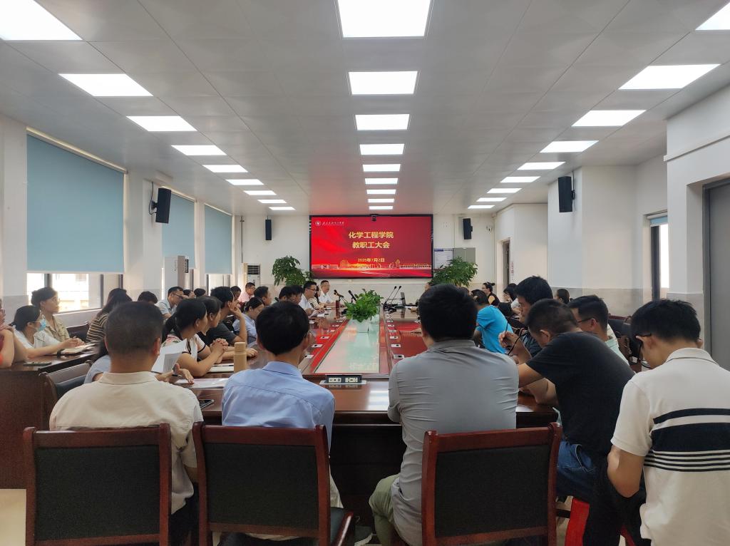 化学工程学院于7月2日下午在化工楼C203召开了2025年春季学期期末教职工大会。本次会议由化学工程学院院长余长林主持,院领导班子成员及全体教职工参加。会议总结了本学期教学、科研、学生工作等各方面情况,对暑期及下学期工作进行了规划部署。