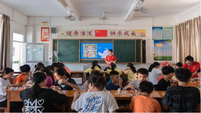 随后的支教工作中,志愿者小老师们,带领同学们清扫校园大家庭;开展演讲、手工、绘画等课程;丰富了大角同学们的课堂生活。
