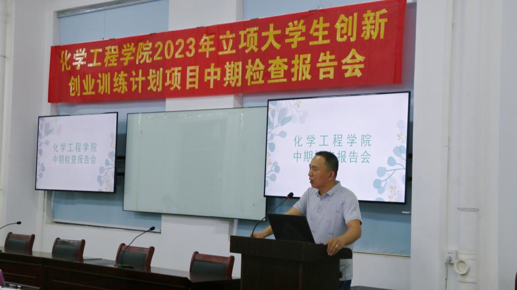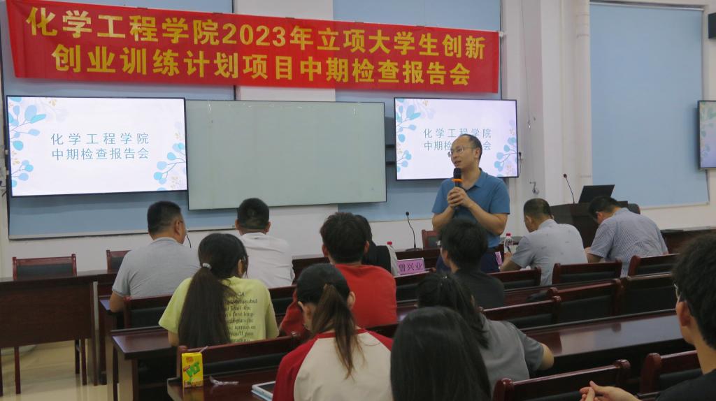 5月11日晚,化学工程学院在化工楼C104组织开展了“2023年立项大学生创新创业训练计划项目中期检查报告会”。化学工程学院党委副书记纪玉刚、副院长曾兴业,双创学院副院长孙健、胡紫音老师,石油化工系副主任杨冲、邓益强老师、辅导员黄丹颖及各项目成员参加本次活动。