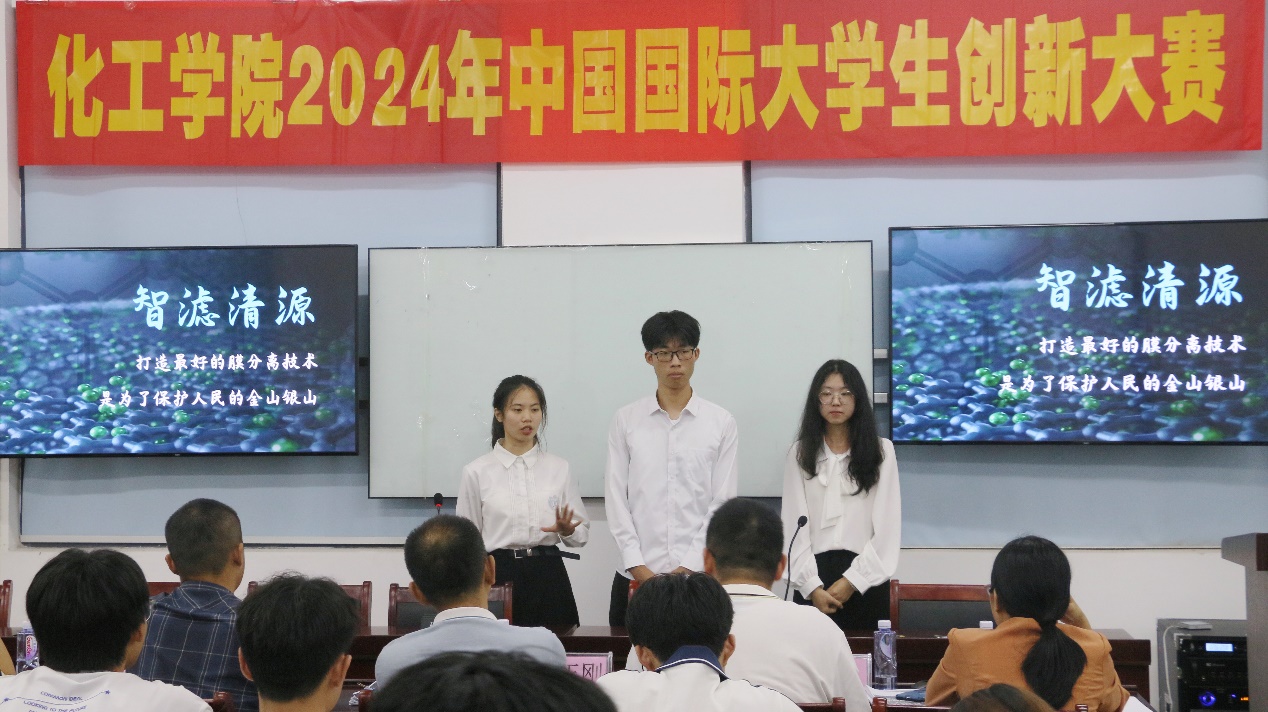 6月6日晚上,化学工程学院在化工楼C104举办中国国际大学生创新大赛(2024)院赛。学院党委副书记纪玉刚、石油化工系主任杨冲、化工实验与实训中心副主任林存辉、能源化工系王蕾博士、辅导员黄丹颖以及各参赛团队参加了本次活动。