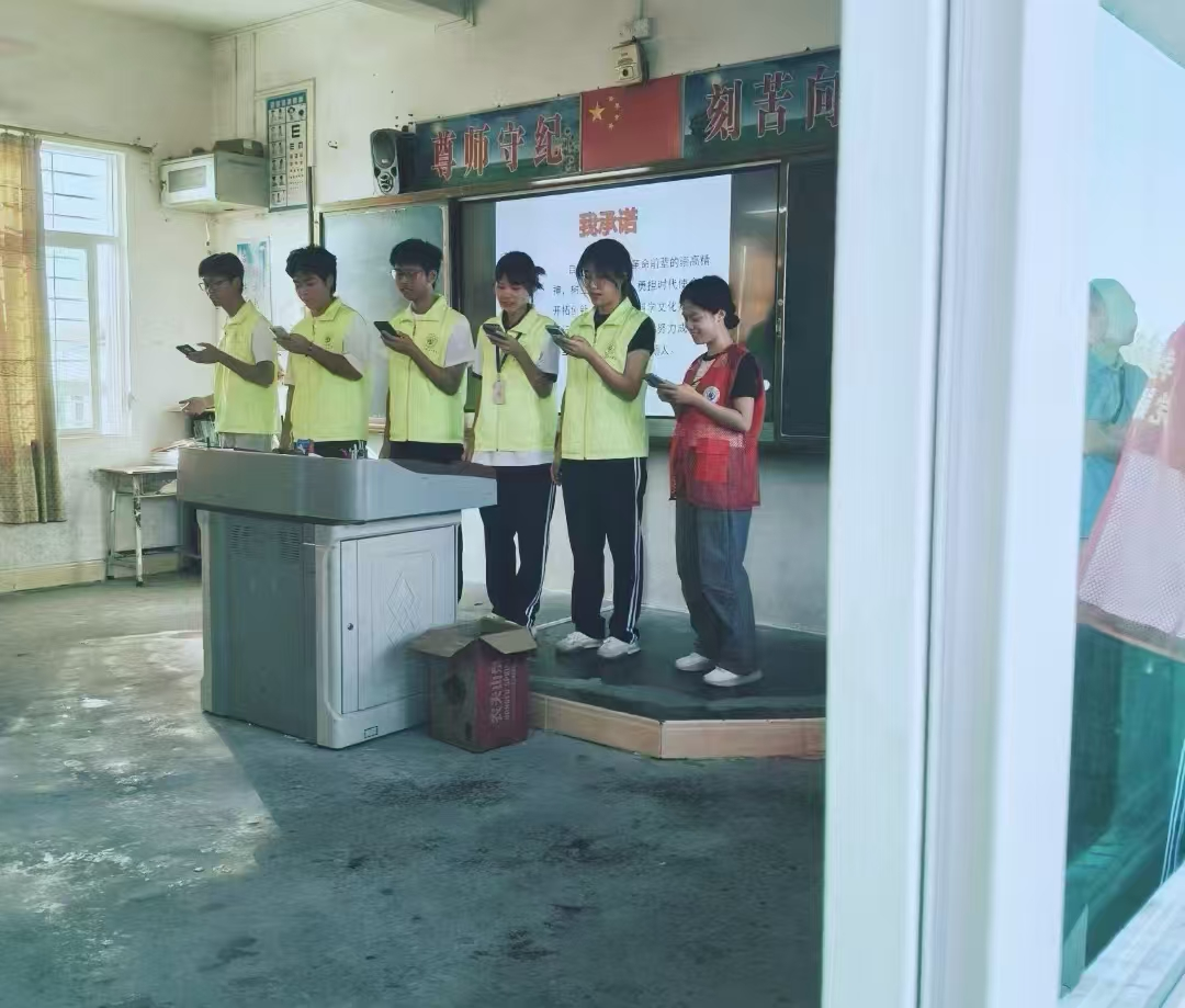 此外,志愿者们还精心准备了才艺表演,活动现场氛围欢乐无比,掌声不断,拉近了志愿者们与孩子们之间地距离。活动的尾声,孩子们郑重宣读了活动承诺书,表达了他们珍惜资源、保护环境的决心和行动承诺。随后,全体人员一起合唱了《我们是共产主义接班人》,激昂的旋律和坚定的歌声回荡在活动现场,将整场活动推向了高潮。