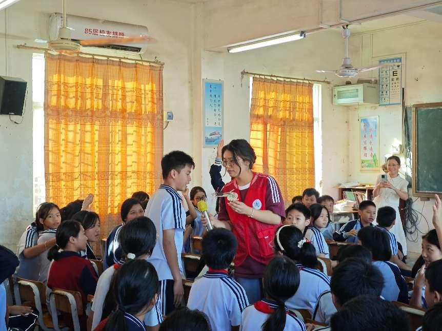活动中,退伍学生谢梦烽以其独特的视角和亲身经历,深情分享参军入伍的有趣故事,让同学们对军人的职责与荣耀有了更深的理解和认识;大学生志愿者们以饱满的热情和专业的知识,为孩子们带来了一场别开生面的能源知识科普盛宴。他们通过生动有趣的讲解和直观形象的趣味小实验,将原本枯燥乏味的石油知识变得鲜活起来,让孩子们在轻松愉快的氛围中学习到了石油的重要性、开采过程以及保护石油资源的必要性。
