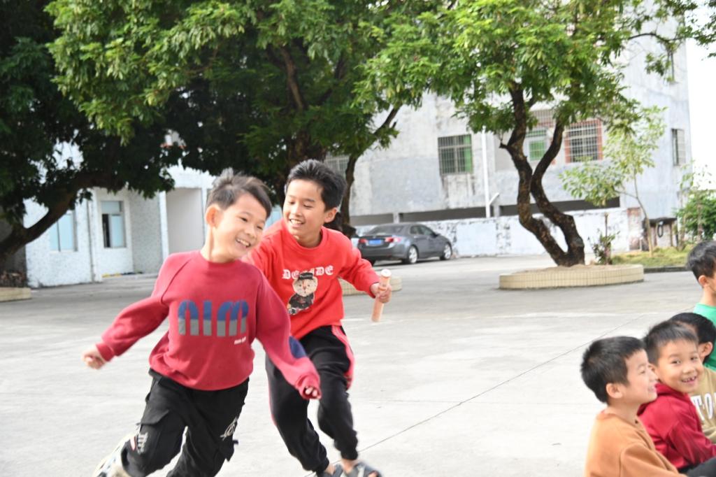 “丢手绢”则将童趣与互动相结合,学生们围坐成圈,在紧张又期待的节奏中奔跑、追逐,充分展现了活泼灵动的一面;最后的“班级接力跑”更是将活动推向高潮,学生们积极投入,在奔跑与传递接力棒的过程中展现出团结拼搏、奋勇争先的精神风貌。