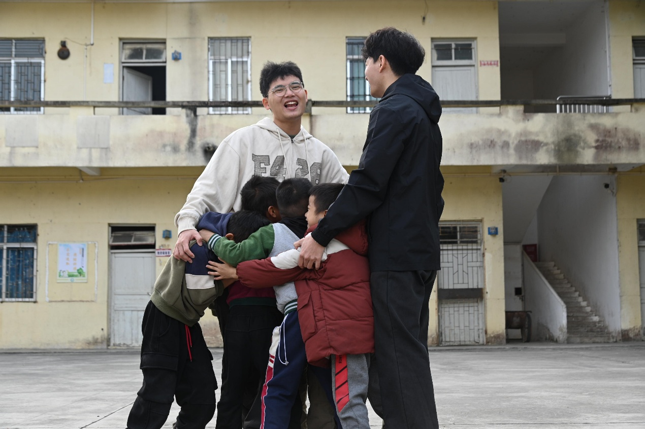 实践团成员与学生进行“报团取暖”小游戏