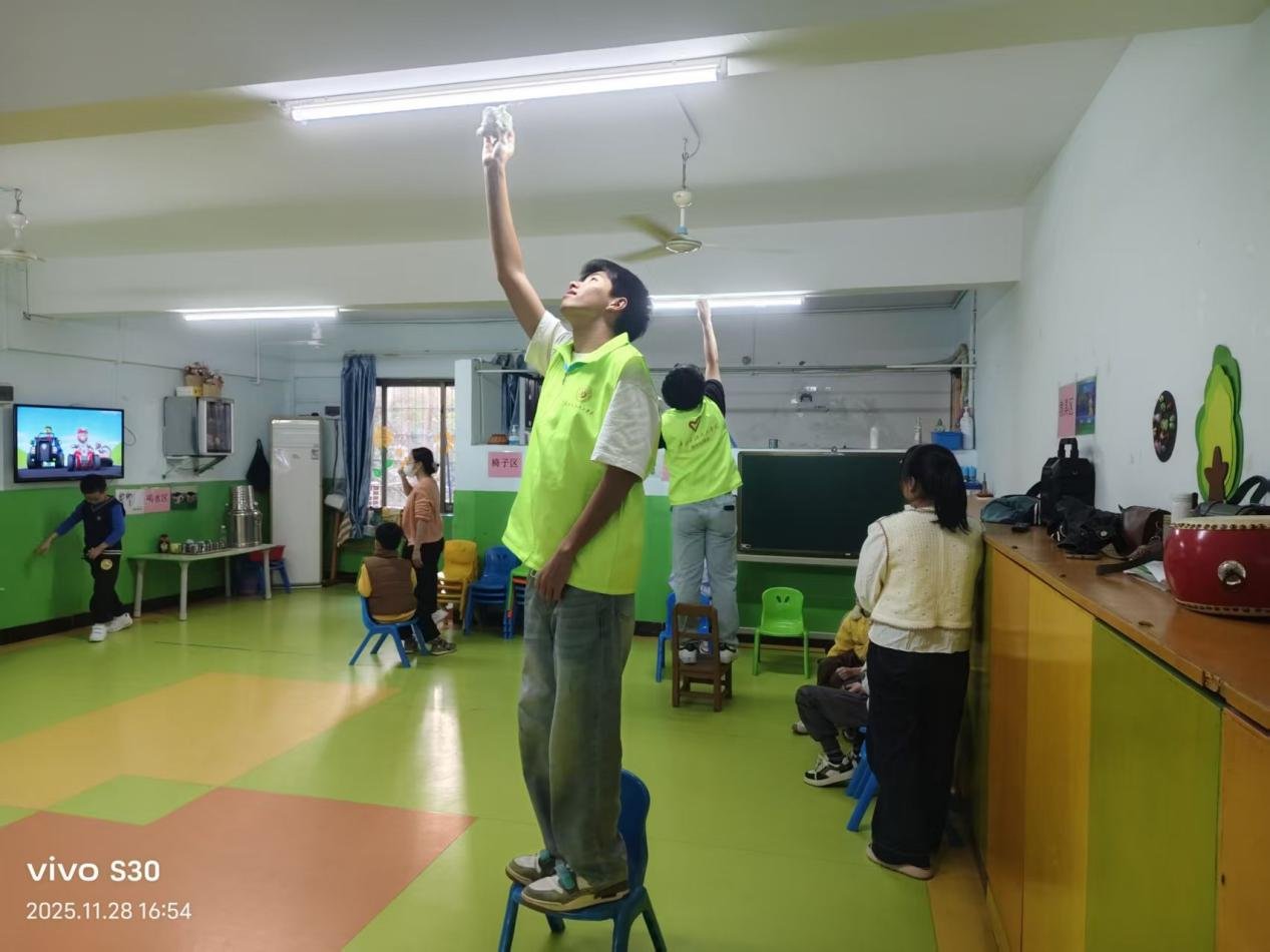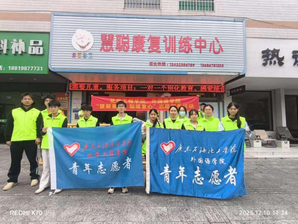 每颗星星都有其独特的轨迹,每一个孩子也拥有与世界对话的独特方式。为传递“尊重、包容、平等”的融合教育理念,以实际行动关爱自闭症儿童,2025年11月17日至12月12日,best365足球官网组织开展了“慧聚星光,聪暖童心”志愿服务活动。来自化学工程学院与外国语学院的135名志愿者分批走进茂名市慧聪康复训练中心,通过持续的陪伴与细致的协助,为孩子们带去了温暖与支持,也为康复教育注入了青春活力。