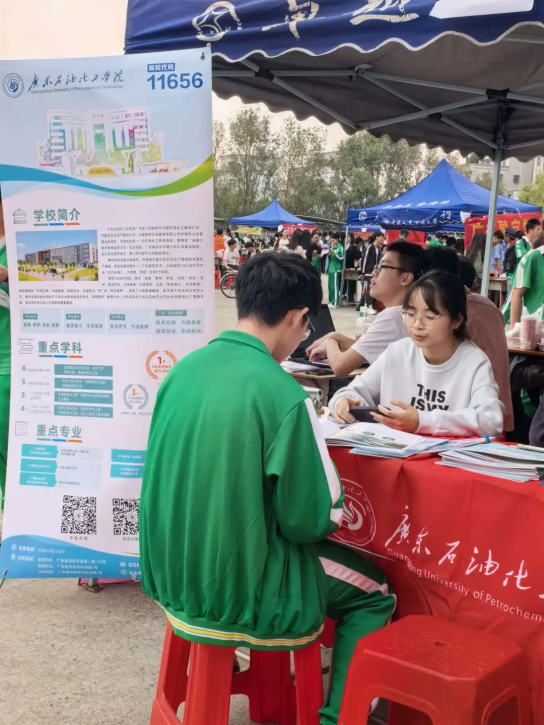 2月7日,实践队在化州市第一中学迎来此次“百校行”的压轴之站。宣传点前,队员们耐心答疑、倾囊相授,不仅为学子们指点迷津,还现场搭建“点对点咨询群”,将温暖与陪伴延续至线上。一场面对面的交流,承载着心与心的约定——九月,广油见。活动现场气氛热烈,学子们踊跃参与,这场寒冬里的宣讲,不仅为化州学子送上了切实的升学指引,更在心底悄然点燃了希望的火种。