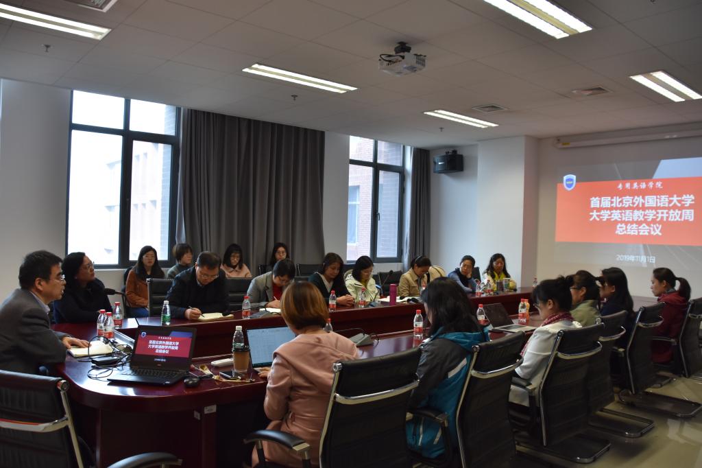 11月1日下午,kaiyun开云官方在西校区国际大厦1016会议室召开“首届北京外国语大学大学英语教学开放课堂暨研讨会”总结会。教务处处长李莉文、外研社高等英语教育出版分社社长助理冯涛、kaiyun开云官方常务副院长蔡鸿、副院长仵胜奇及学院参加开放课堂的教师代表共计23人参加了会议。会议由蔡鸿主持。