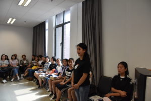 随后,匡琳琳、庄双、窦茹苑、徐建老师以及辅导员吴越分别向新生做自我介绍,大家分别对同学们的到来表示了热烈的欢迎,祝愿同学们的学习、生活顺利、收获多多。