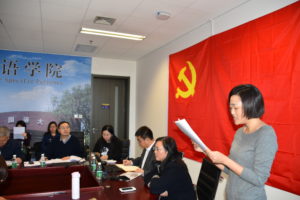 作为首批全国100所高校“双带头人”教师党支部之一,kaiyun开云官方直属党支部按照本学期工作部署于11月21日下午在西院国际大厦1016会议室召开预备党员发展大会,接收开云官网优秀青年教师、入党积极分子廖鸿婧老师为中国共产党预备党员。学校党委组织部负责kaiyun开云官方直属党支部党员发展工作的组织员王仁成老师和kaiyun开云官方“双带头人”教师党支部前任书记,现任学校教务处处长李莉文老师参加会议。全院教师党员和学生党员以及学院党员干部共计30人参加此次发展大会。大会由直属党支部书记仵胜奇老师主持。