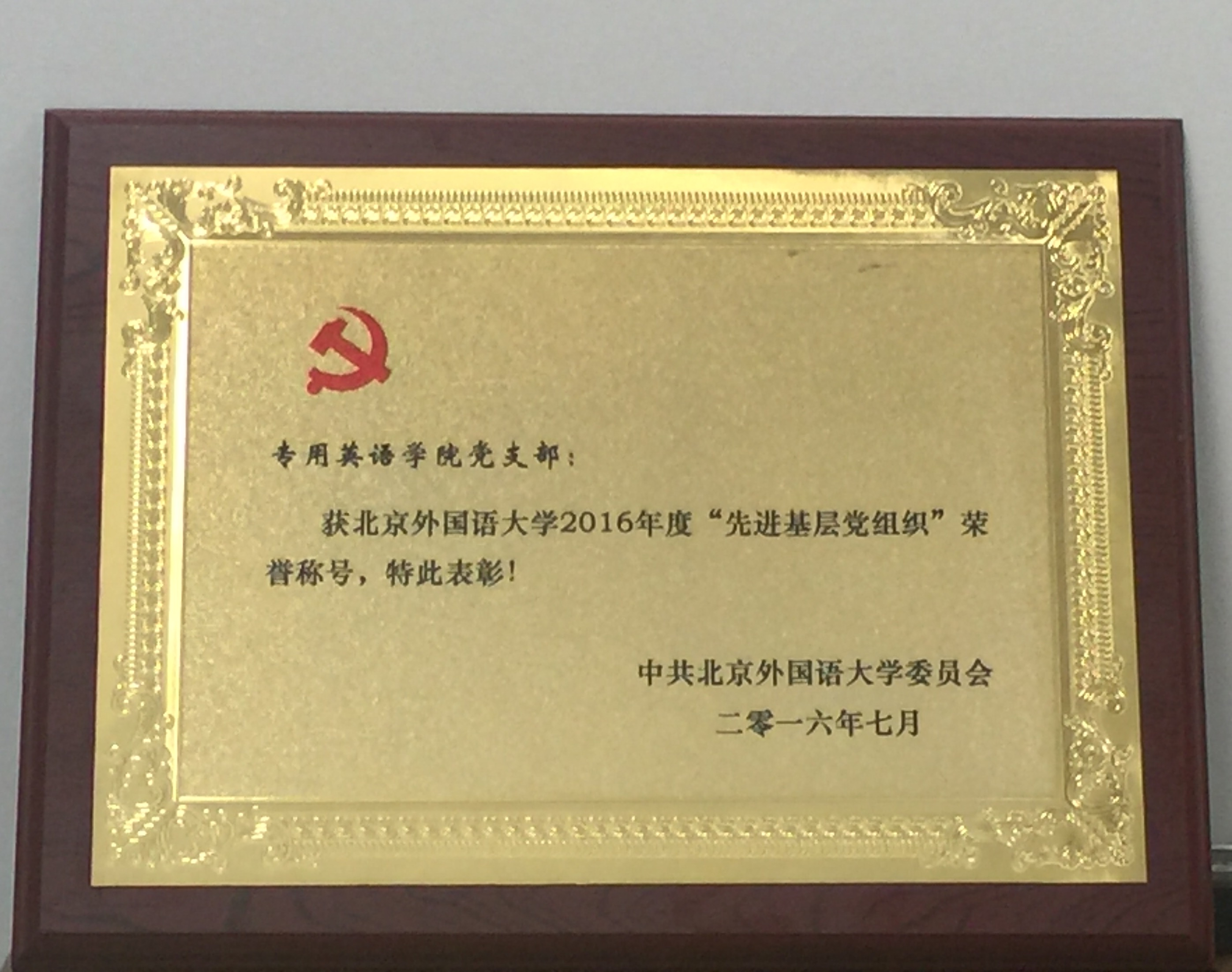 开云官网党支部获北京外国语大学2016年度“先进基层党组织”荣誉称号
