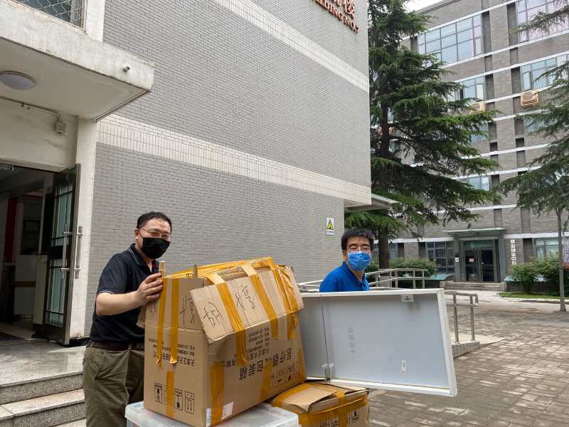 7号宿舍楼没有电梯,教师志愿者们就把103个打包纸箱背上七层,在打包完成后由托运公司搬到学校操场指定地点,再办理好托运手续,最后把托运信息发给学生。端午节那天的打包工作,令学生感动不已,看着汗流浃背的老师,听着他们耐心询问的声音,感受到的是满满的归属感和幸福感。这些平日在教学科研和学生服务一线奋战的教学标兵、科研骨干、学术带头人、优秀辅导员、班主任,在抗击疫情的特殊时刻,积极响应学校号召,承担起特殊使命,谱写了教师知行合一、有仁爱之心、有奉献之意的感人故事。